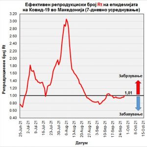 Ефективниот репродукциски број Rt = 1.01 ± 0,35 неделава е практично точно на единица, точката на проста репродукција и стабилен раст на дневните броеви на нови случаи, но со тренд на раст.