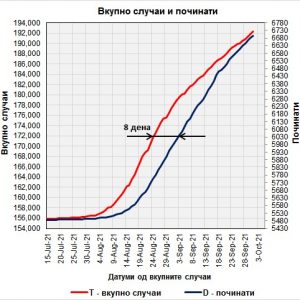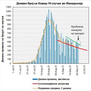 „02.10.2021. По втор пат неделава е пробиена надолната линија на трендот на дневните броеви (зелената линија на првиот дијаграм).