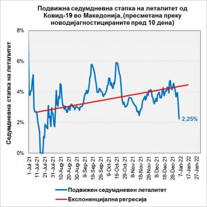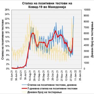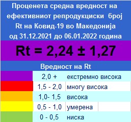 “06.01.2022. Ефективниот репродукциски број Rt одново, но многу побргу отколку во претходните бранови, се најде во зоната на екстремно високи вредности, над 2,0.