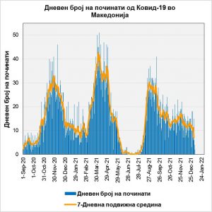 Ова рано намалување на бројот на умрени кажува дека омикрон сојот кај нас се ширел најмалку 2-3 недели.