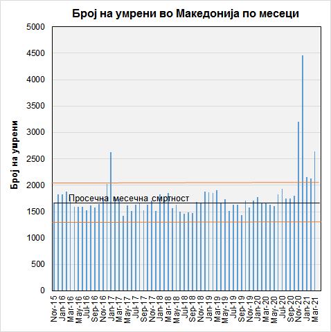 “Во Билтенот бр. 05/2021 на Државен завод за статистика (ДЗС) се објавени броевите на починати во Македонија по месеци, заклучно со месец март 2021.