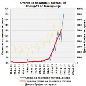 Од друга страна, стапката на позитивни тестови достигна рекордни вредности во овој бран.