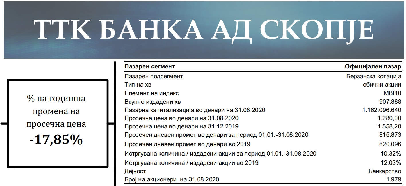 Во новото продолжение од серијалот текстови ќе ги презентираме податоците за ТТК Банка АД Скопје.