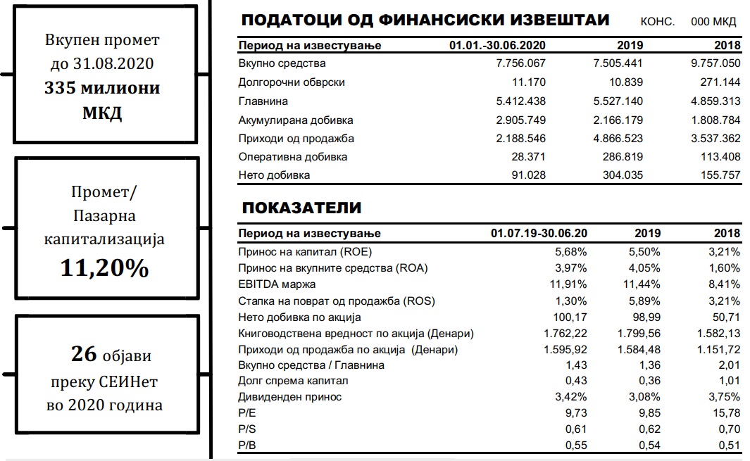 Македонската берза ја објави новата публикација „Факти за котираните компании“ во која се објавени податоци за 20 најликвидни компании на берзата.