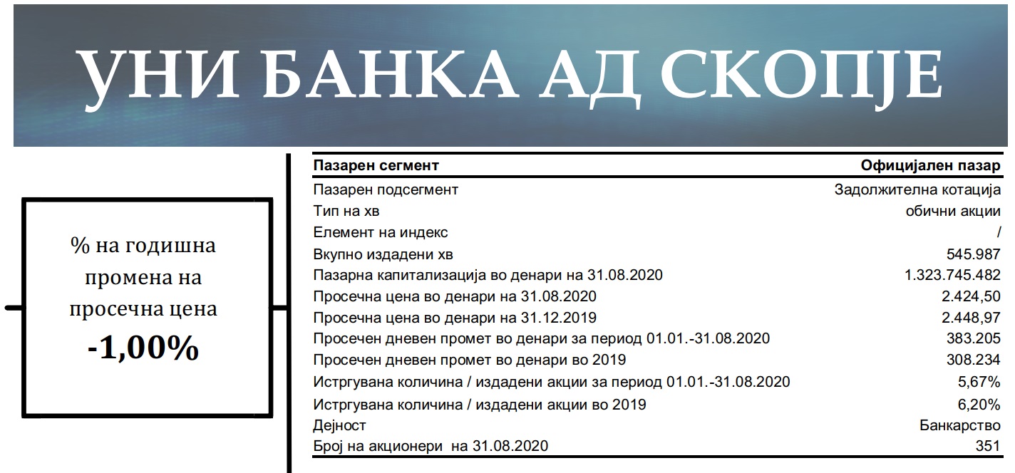 Во новото продолжение од серијалот текстови ќе ги презентираме податоците за УНИ банка АД Скопје.