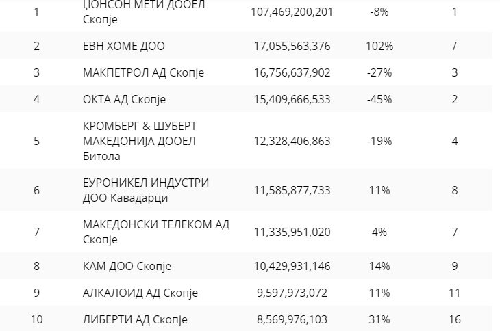 Порталот Пари во соработка со платформата за бонитетни информации БизнисМрежа.мк, ја објави листата „100 Најголеми“ компании според приходи во Македонија за 2020 година.