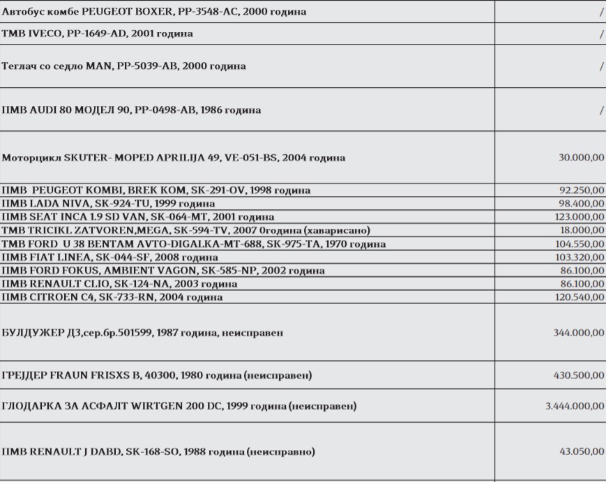 На продажба се нудат ниви, пасишта, лозје, автомобили, товарни возила, машини, шампони, блошки, пелени и други предмети.