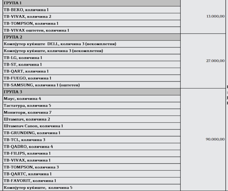 УЈП продава и пакет од пет телевизори со почетна цена од 13.000 денари, пакет од 15 телевизори, компјутерски куќишта и три штампачи за 90.000 денари…