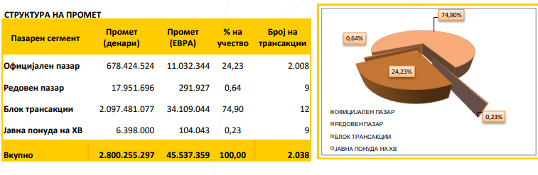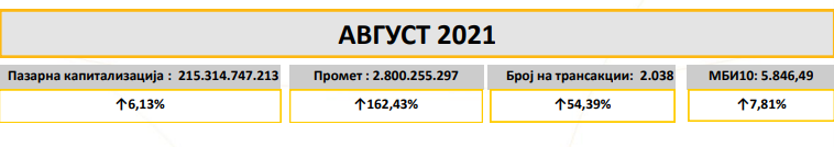 Македонската берза го објави билтенот за август, кој покажува раст на прометот и бројот на трансакции: