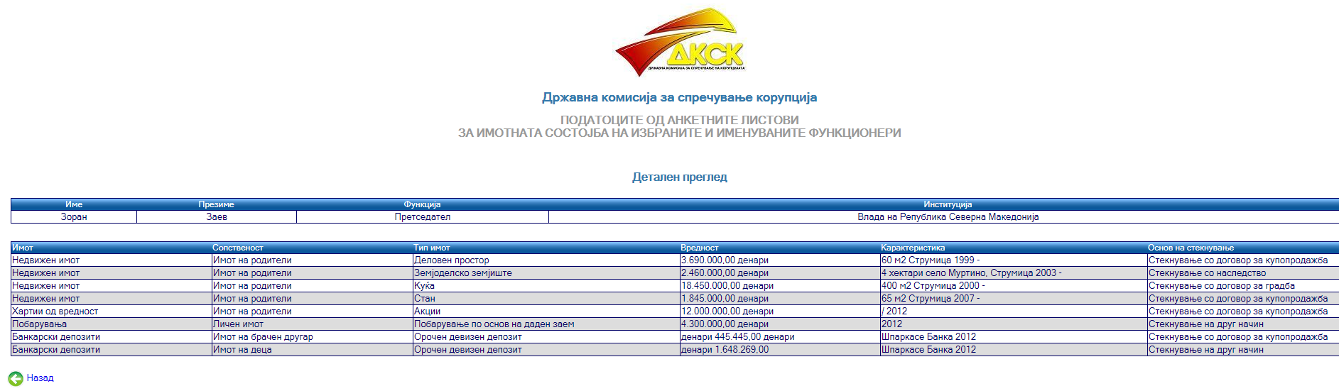 На веб страната на ДКСК неможе да се најде неговиот претходен анкетен лист, но еМагазин го има во својата архива, па направивме споредба колку Заев, кој е по вторпат премиер во меѓувреме се „збогатил“.