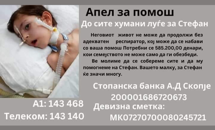Семејството на Кико, кој ја сплоти Македонија, донираше 500 илјади денари за респиратор за малиот Стефан.
