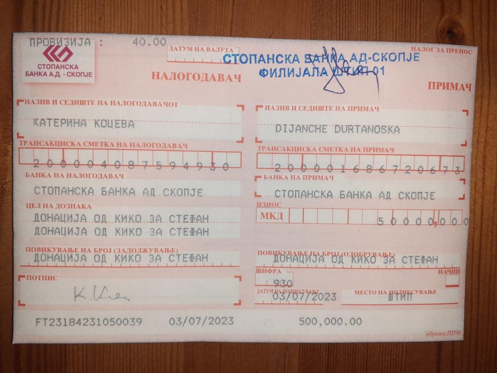 -Како што најавив пред 2 дена, ова утро од семејство Коцеви е извршена донација во вредност од 500.000 денари.