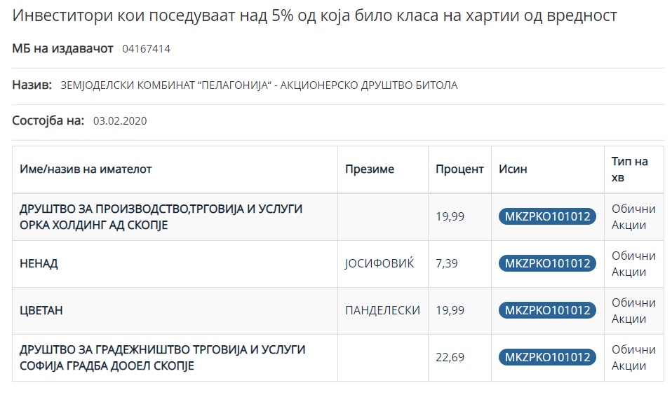 Интересна е акционерската структура на двете компании во која се јавуваат добро познати фирми и лица поврзани со Јордан Камчев и Цветан Панделески.