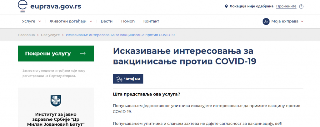 Линк на кој може да се пријавите за вакцинација во Србија, ОВДЕ.