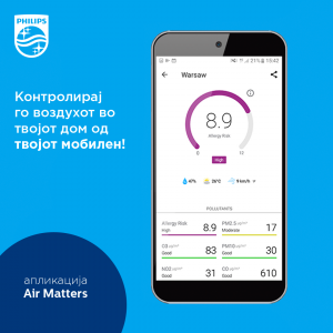Една од поголемите предности кои ја нудат Philips апаратите за прочистување на воздух е далечинското прегледување и контрола на квалитетот на воздухот во домот преку мобилна апликација на вашиот мобилен телефон или таблет.