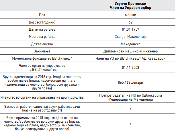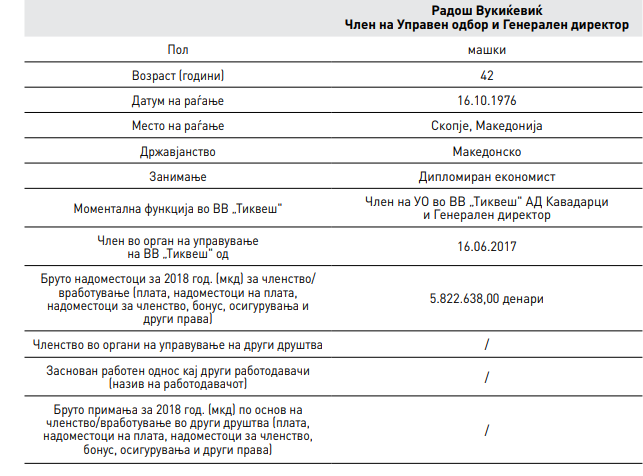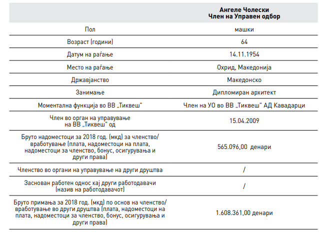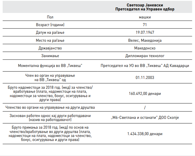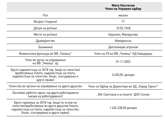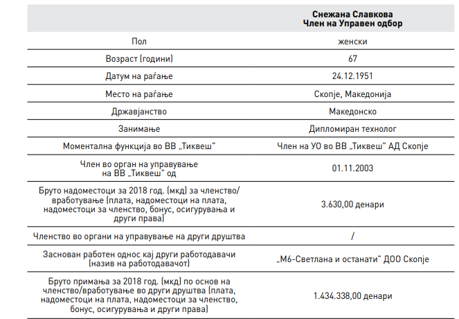 Винаријата Тиквеш, традиционално во Годишниот извештај за работењето на компанијата, објавен преку Македонската берза, ги објави платите на менаџментот.