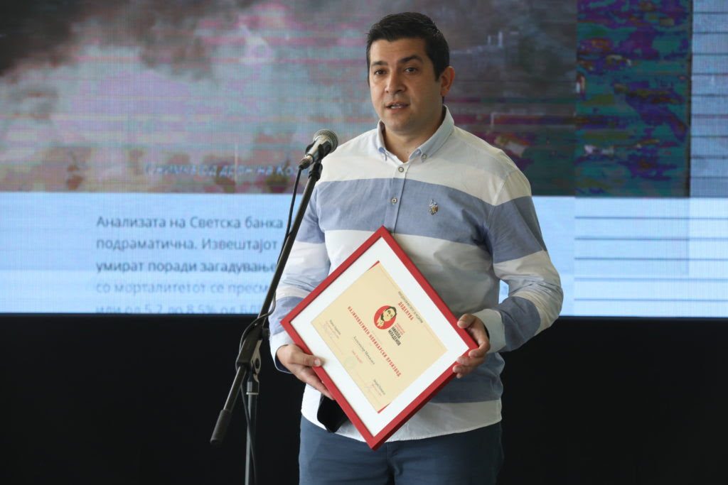 Наградата за најдобар иновативен новинарски производ е доделена на новинарот Александар Манасиев за мултимедијалната сторија „Тивките балкански убијци“ што ја обработува темата за влијанието на термоцентралите врз животната средина, објавена на Интернет платформата „Види вака“.