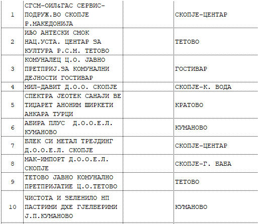 Управата за јавни приходи (УЈП) ја објави Листата на должници за јануари 2023 година, за долгови доспеани до 30.09.2022 и неплатени до 31.12.2022 година по основ на ДДВ, данок на добивка, персонален данок на доход, придонеси од задолжително социјално осигурување, акцизи и царини, за кои вкупниот износ на долгот е повисок од 120.000 денари за физичките лица и самостојни вршители на дејност и повисок од 300.000 денари за правните лица.