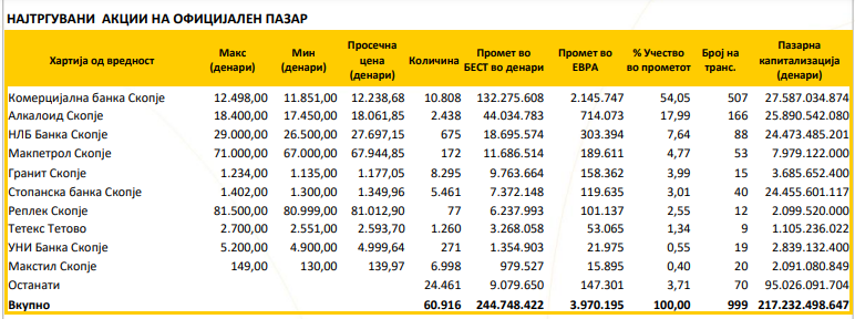 Македонската берза го објави билтенот за април, а оваа се најтргуваните акции: