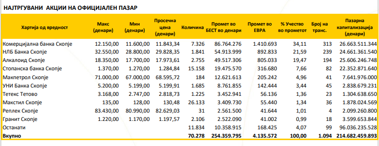 Македонската берза го објави билтенот за мај, а оваа се најтргуваните акции: