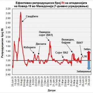„Веќе неколку дена мериме зголемена преносливост, со последен седумдневен просек на ефективниот репродукциски број Rt = 1,16 ± 0,67 и тенденција на понатамошен раст (на првиот дијаграм).