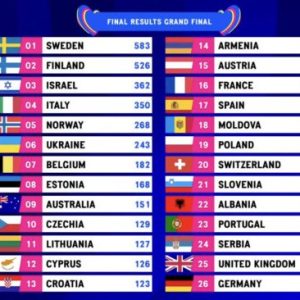 Лани на Евровизија победи Украина, а годинешново издание се одржа во Ливерпул, Велика Британија, поради војната таму.