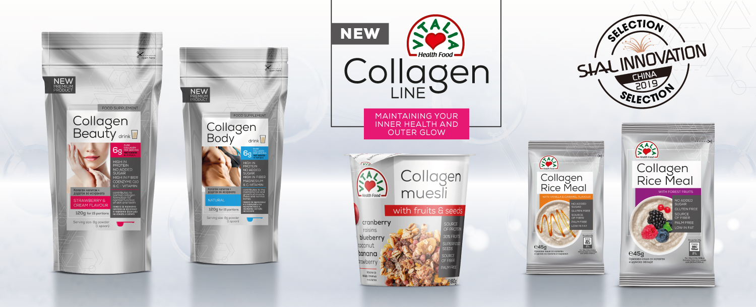 Помеѓу низата производи кои се дел од понудата на Виталиа, последната иновација во нивниот асортиман е колагенската линија што содржи разновиден склоп на продукти кои се збогатени со колаген.