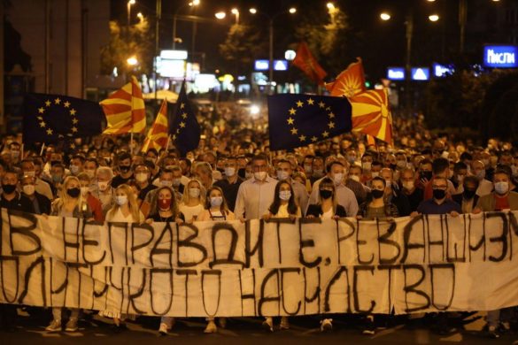 Од зградата на Министерството за правда до пред Кривичниот суд Скопје, вечерва ВМРО-ДПМНЕ одржа протест против „неправдите, реваншизамот и политичкото насилство“. Учесниците во протесниот марш постојано скадира „Слобода, оставка и мафија на робија”.