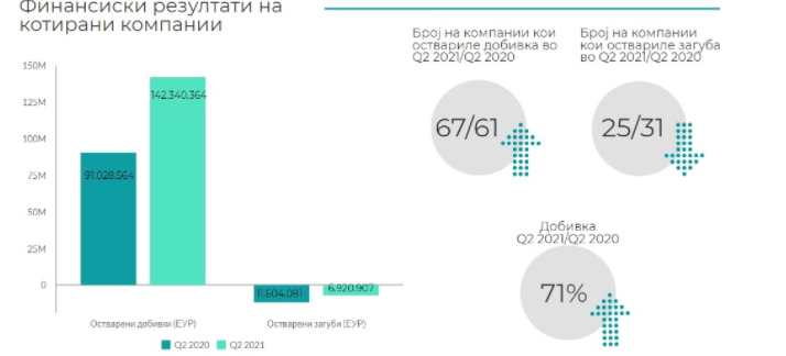 “Вкупната прикажана добивка на котираните компании во Q2 2021 година е зголемена за околу 71% споредено со истиот период лани“, велат од Берзата.