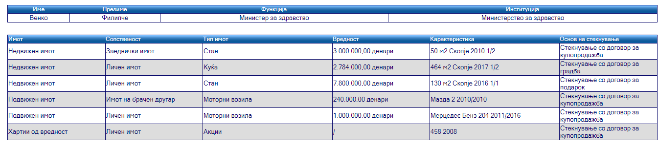 еМагазин го разгледа неговиот анкетен лист кој го доставил до Државната комисија за спречување корупција кога станал министер.