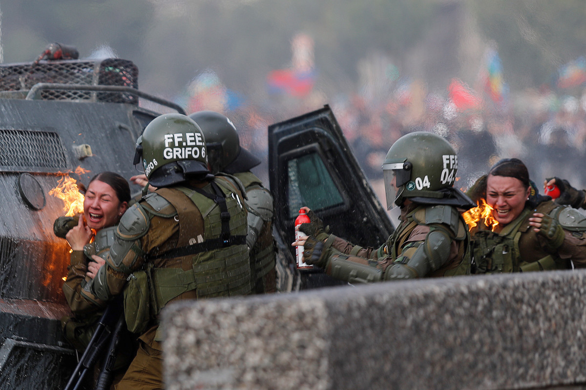 Две полицајки завршија со тешки изгореници на лицата откако беа погодени од молотови коктели за време на протестите во Чиле.