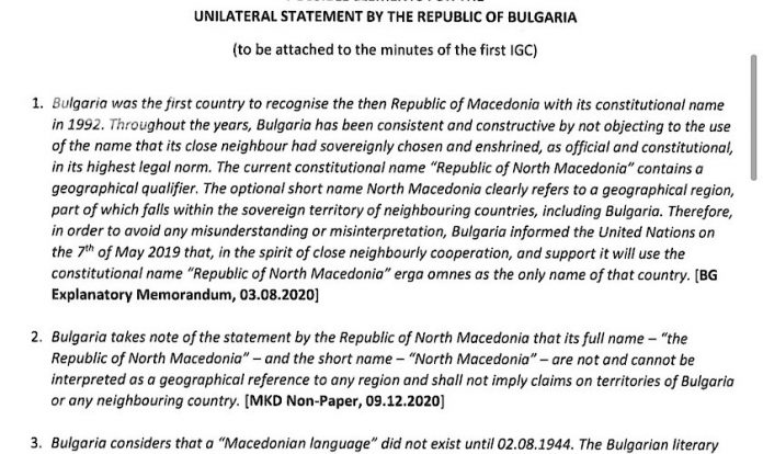 Предлозите, пишува БГНЕС, во пракса значат тргнување на секакви гаранции за исполнување на можните договорени работи кои се основен проблем во односите на Република Северна Македонија со Бугарија и Европската унија како целина.