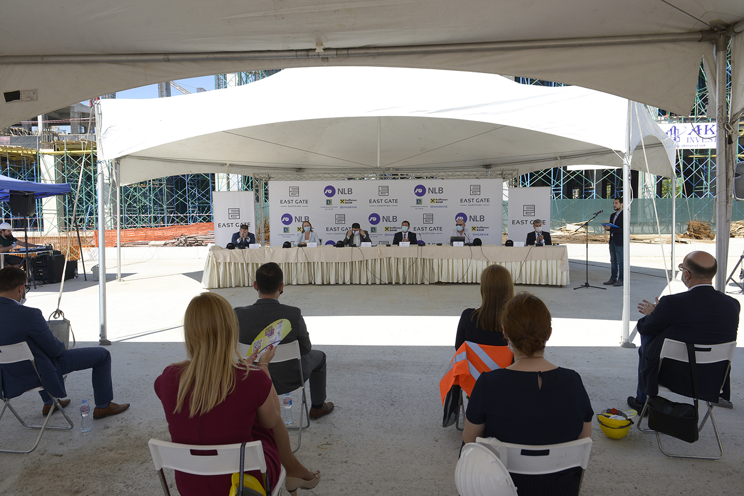 Со овој синдициран заем ќе се овозможи изградба на еден од најсовремените трговски центри на Балканот. East Gate Mall е дел од модерниот и современ повеќенаменски комплекс Скопје East Gate, кој e распространет на преку 15 хектари земјиште и опфаќа трговски центар, резиденцијален комплекс и канцелариски парк со вкупна планирана бруто изградена површина од над 500.000 м2, со што претставува најголемиот повеќенаменски проект во недвижности во државата.